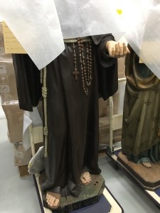 My favorite was a statue of St. Rocco, which was being treated with the million little injections of chemicals to fight its extensive termite damage. A decision has been made to not replace the missing feet, but to leave as is.