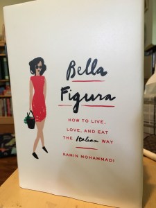 I recently read one I particularly enjoyed, Bella Figura, by Kamin Mohammadi, a former London magazine editor of Iranian descent, who moves to Firenze after losing both her job and her boyfriend. Besides her accounts of her romantic and other adventures there, I was most interested in the lessons she learned about living the good life. They can be boiled down to this: love yourself by surrounding yourself with only good – not necessarily expensive- things. Eat good, pure food; take the time to sit and enjoy it; reach out and build connections to those around you; make the effort to try to look your best, even if you’re just at the market or strolling with a friend. And here’s a kicker – drink four spoonfuls of excellent-quality olive oil a day.