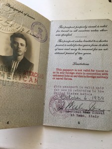 When war was declared in 1939, my father, age 19, left Italy, so he would not have to serve in the Navy, where with his vision problems, he would surely not have survived. His father had come to America before he was born, so my father had dual citizenship. My grandfather was unable or unwilling to take him in, so when my father landed, he was taken in by his uncle Nick and his family, who lived in Cohasset, a picturesque old seaside New England town. There he lived while attending Cohasset High School, working in the family liquor store downstairs, and later hitchhiking into Boston to attend Northeastern University.