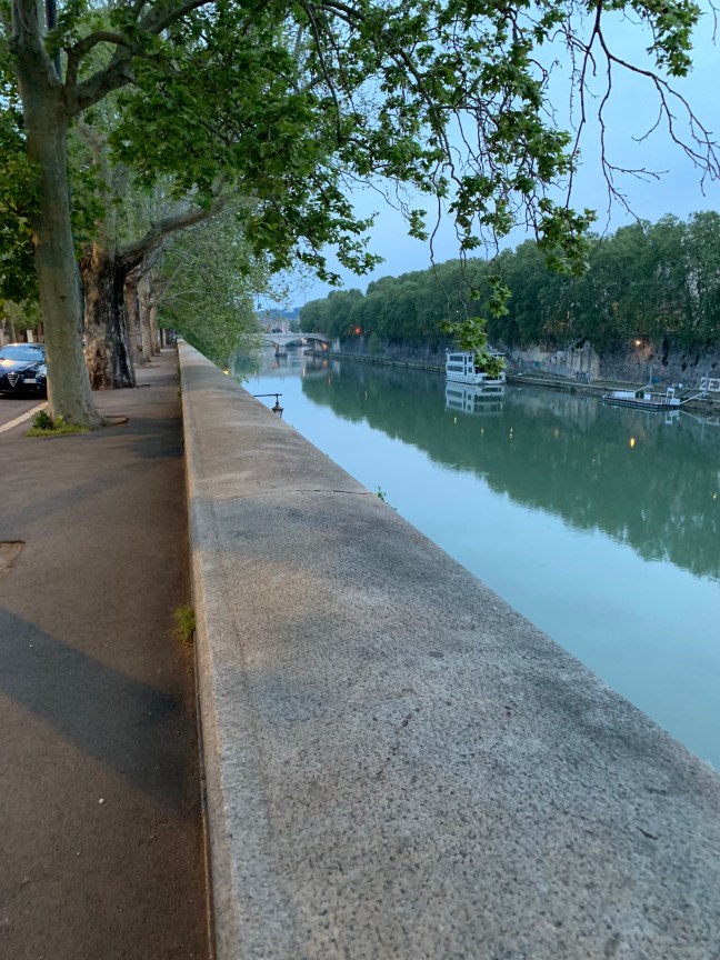 This morning, my first full day in Rome, I waited until the first glimpse of light at 6 before heading out. Unlike when I’m at home in Swarthmore, I am a little apprehensive about running alone in a foreign country when it’s dark, imagining the headline, “Crazy American senior citizen murdered while jogging in the middle of the night.”