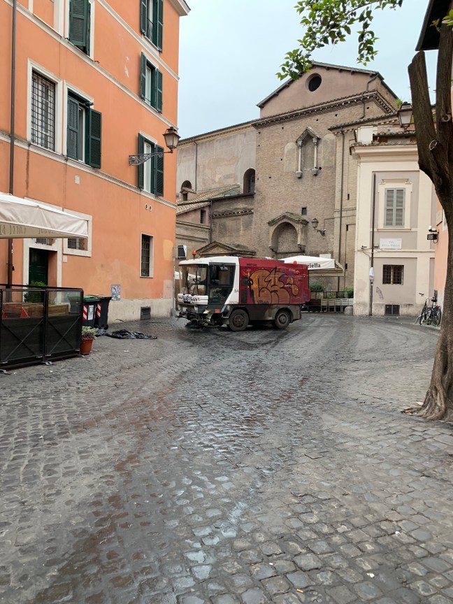 And the pigeons, enjoying a hearty breakfast from the leavings of a Saturday evening in Trastevere.