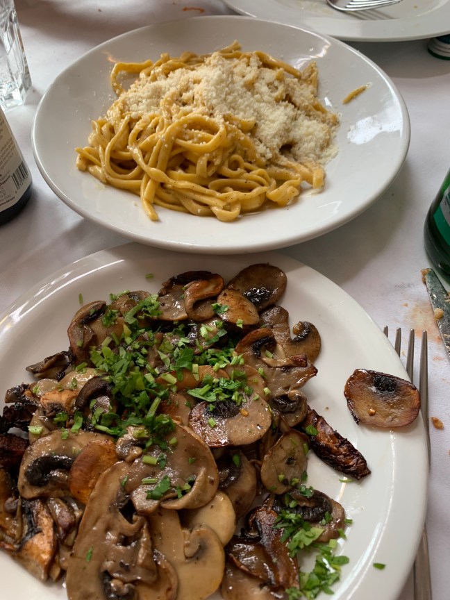 On our recent trip to Rome, Maria and I wandered into some trattorias that just looked good to her, no Yelp reviews but just a hunch. Here are some shots of what we sampled at these places.