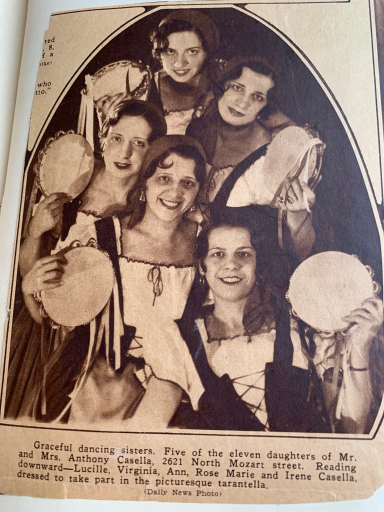 My mother grew up in a (very!) large family of ten surviving girls and one boy. Her parents were both born in Italy but came to America as youngsters. They were proud of their heritage — my mother and her sisters danced the tarantella at the Italian Pavilion of the Chicago World’s Fair — but were also aware of the attitudes around them.