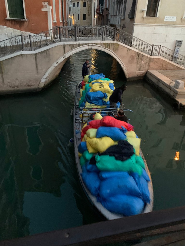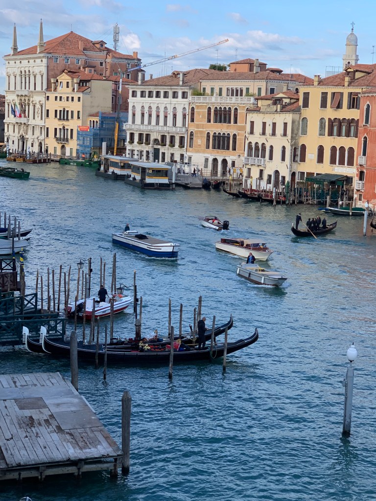 And this time, I have to confess to being blown away — gobsmacked— by the sheer beauty of the place. We have been blessed with blue skies and crisp fall air and the light on the buildings and the canals gives everything a golden cast I’ve not seen elsewhere. And being here without the crush of American tourists, we’ve had the chance to see the real city at work, as Venetians go about their days.