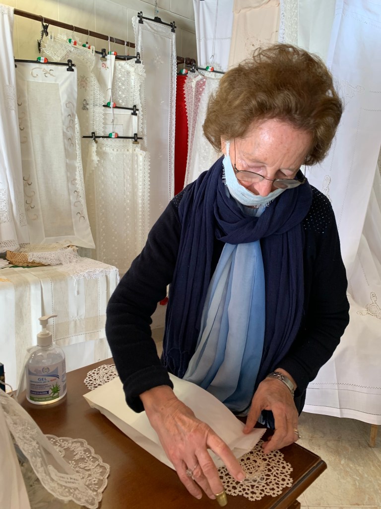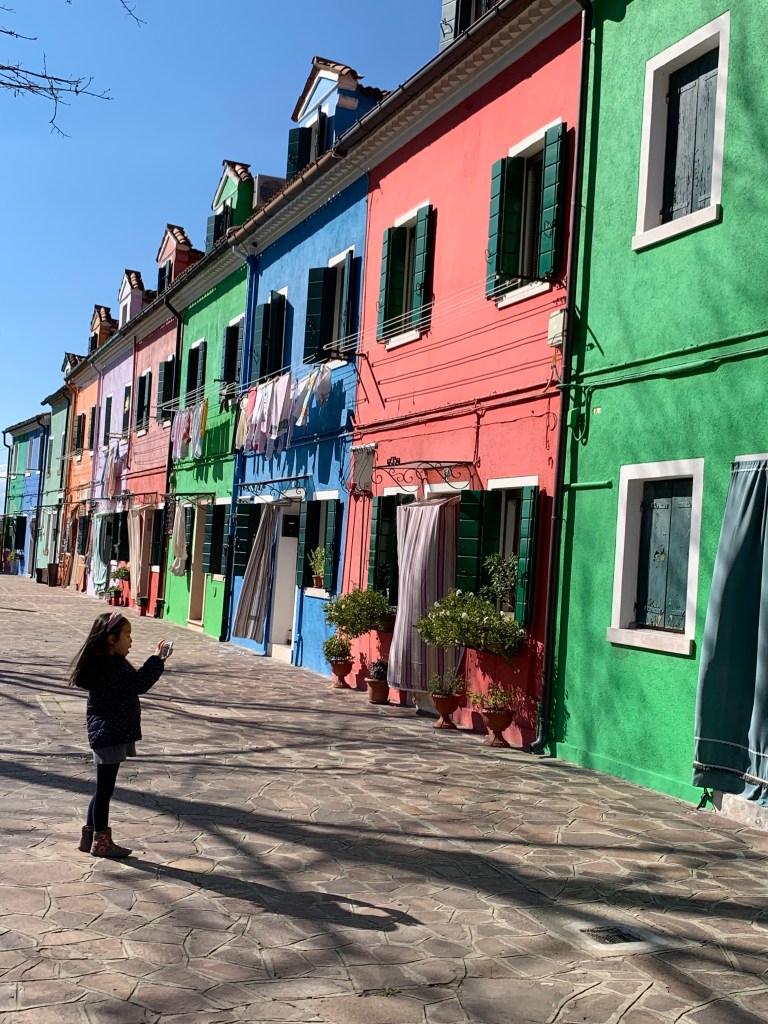 I have always been interested in seeing Burano, a nearby island known for its lace-making, embroidery, and brightly colored houses. I had a wedding gift to buy, and this uncrowded time would be a perfect opportunity for such an excursion. It didn’t disappoint. Sure, it was filled with souvenir shops and wares most likely to have come from China. But I was able to buy my gift in a shop staffed by the lady who made it, or so she claimed, and the houses were straight out of a fairy tale.