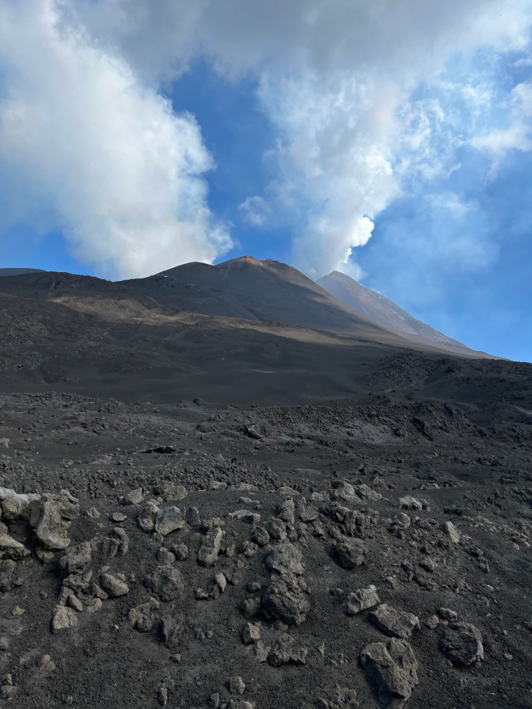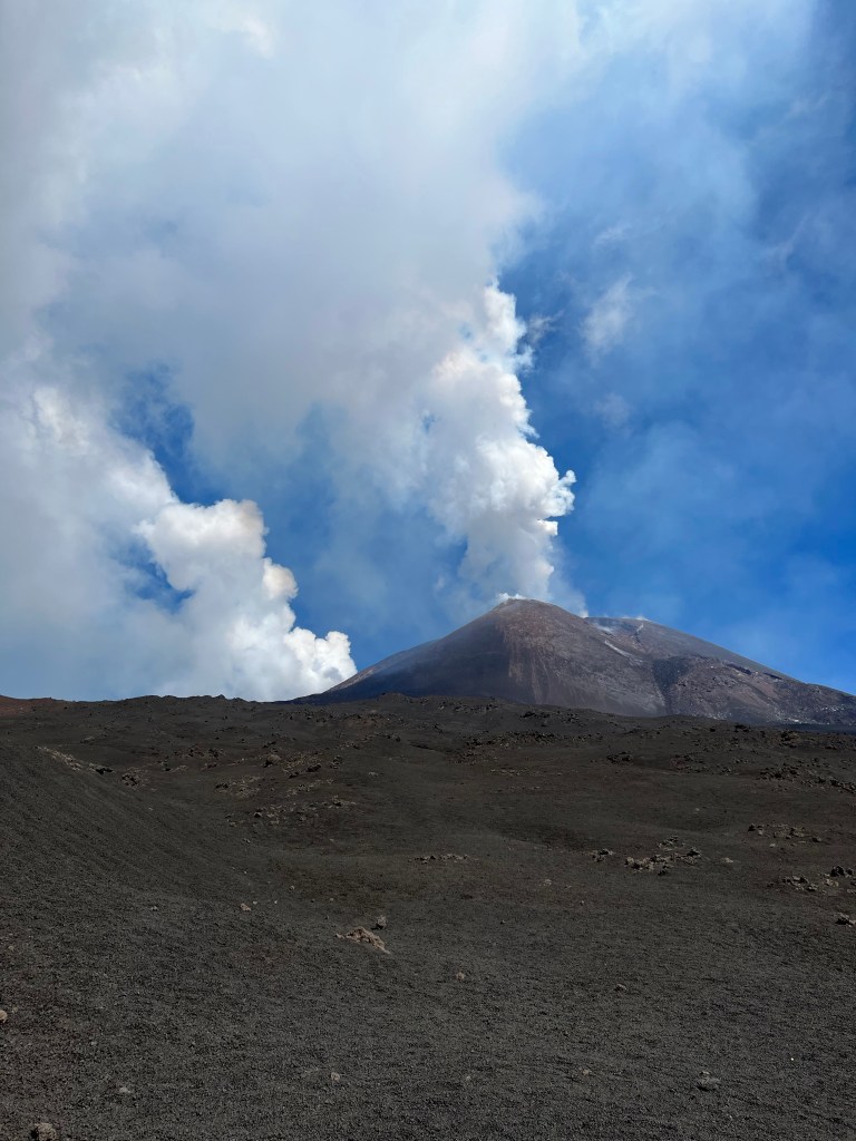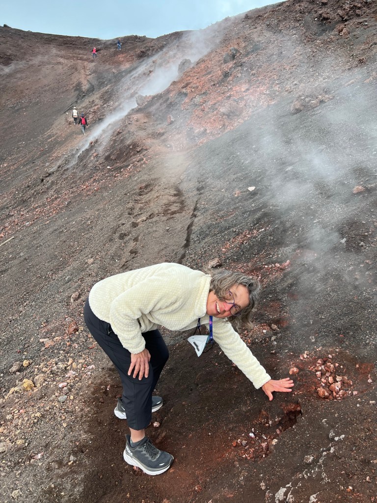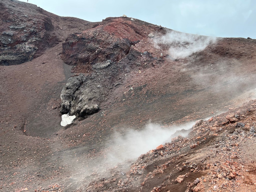 On a hot May day, there are patches of snow on Mt. Etna, even though a few feet away, there’s a steaming hole that is hot to the touch.