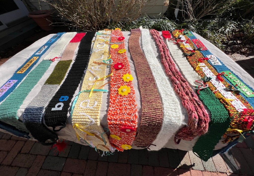 To celebrate this honor and to mark the tragedy of the pandemic, the people there planned a human chain joining the two cities, about fifty miles apart. Rather than join hands, they hatched a plan to have people connect by holding hand-made five-foot-long scarves (five feet being the distance that had been required by social distancing requirements during the height of COVID), as a way to commemorate what they’d been through and honor the strength of their communities.