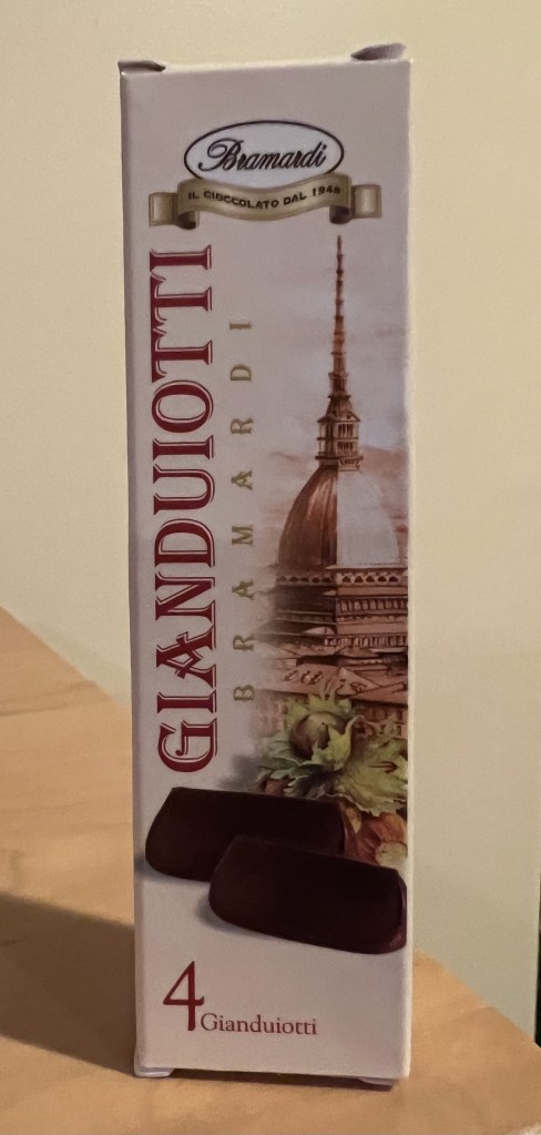 In Torino, the thing you notice everywhere is chocolate, chocolate, chocolate. There is a particular prism-shaped candy of chocolate and hazelnut mixture, gianduiotto, that dates back to Napoleon’s time, and not surprisingly, Nutella was born there.
