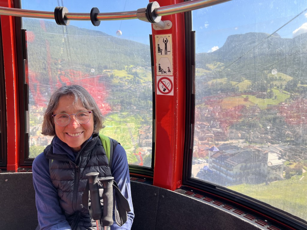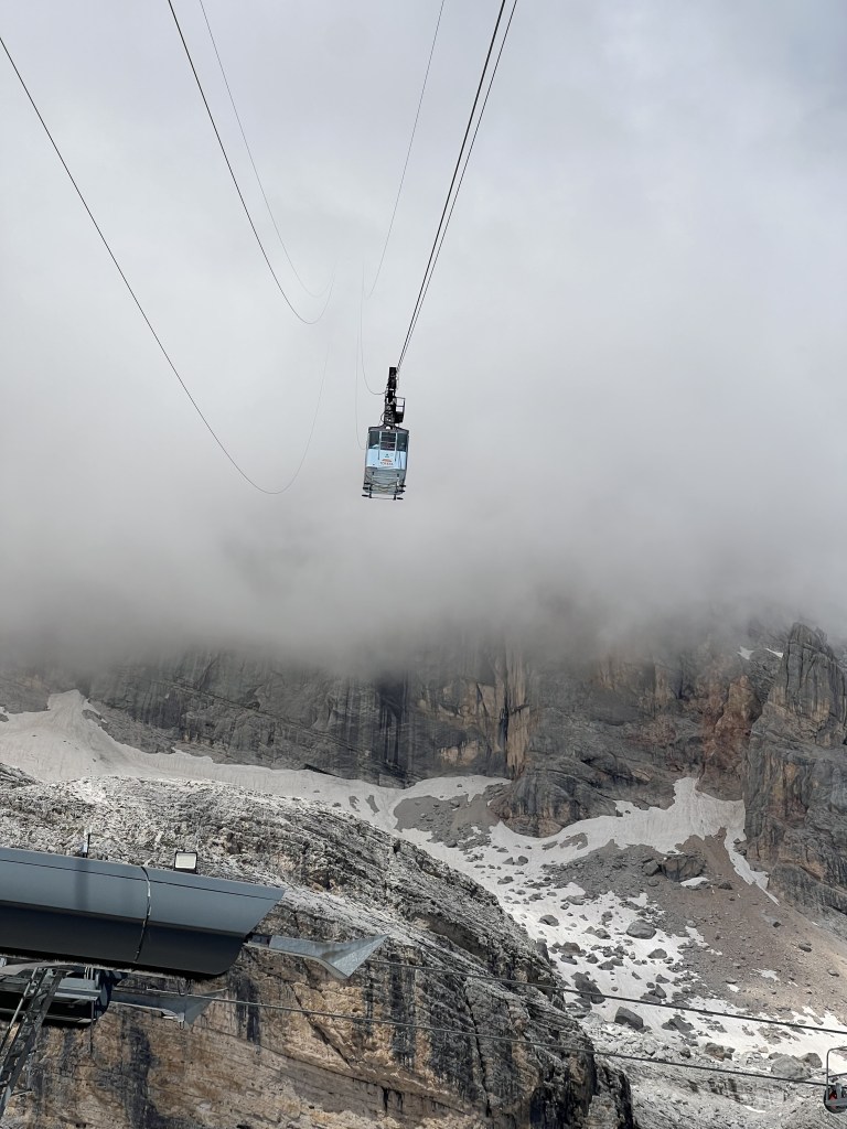 I am a person who is basically afraid of everything: heights, speed, being out of control. I can’t ski and I can barely ride a bike. So, in Cortina, when I saw the vehicle that I would be expected to ride in, my first thought was “No way!” But I took a deep breath, pulled on my big girl pants, and off I went. As long as I didn’t look straight down, or straight up at the wires with which we were suspended, it wasn’t half bad.