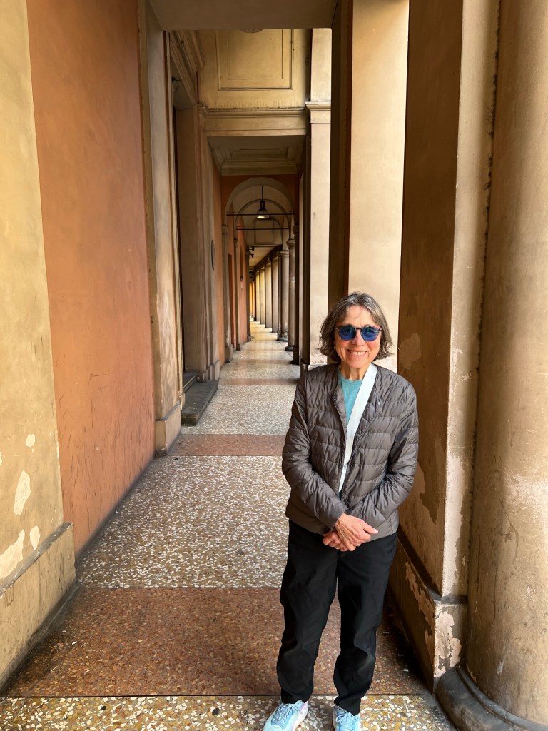 Enjoying one of the 33 miles of porticoes of Bologna, my home away from home for a leisurely three weeks